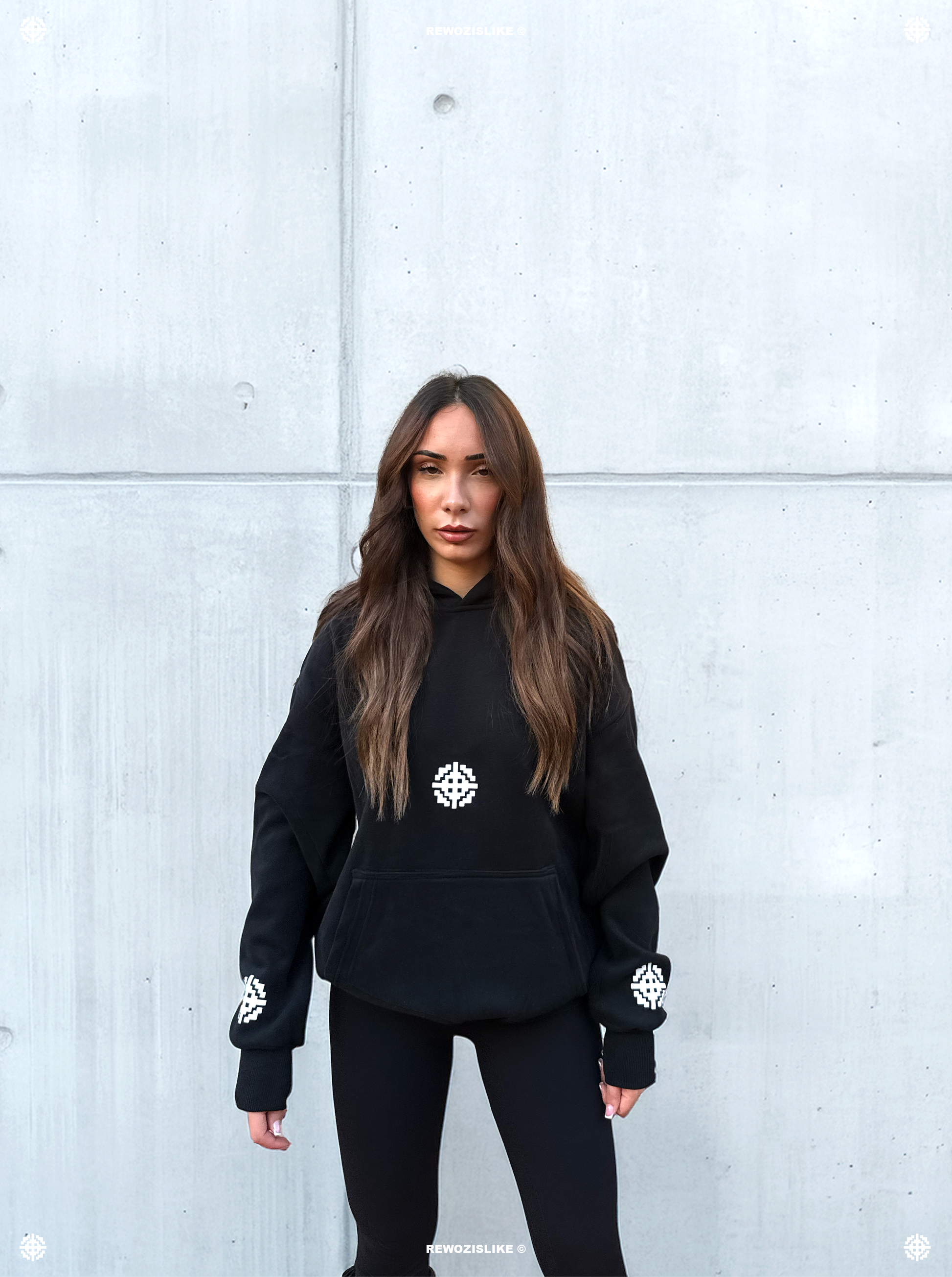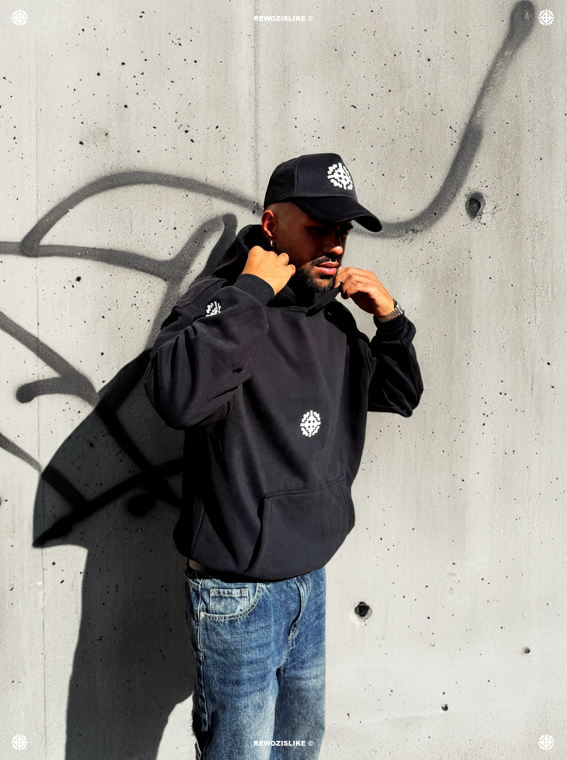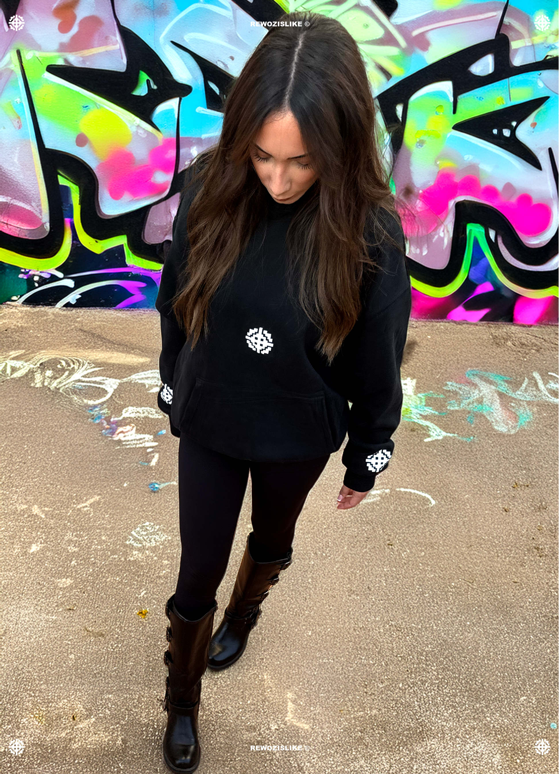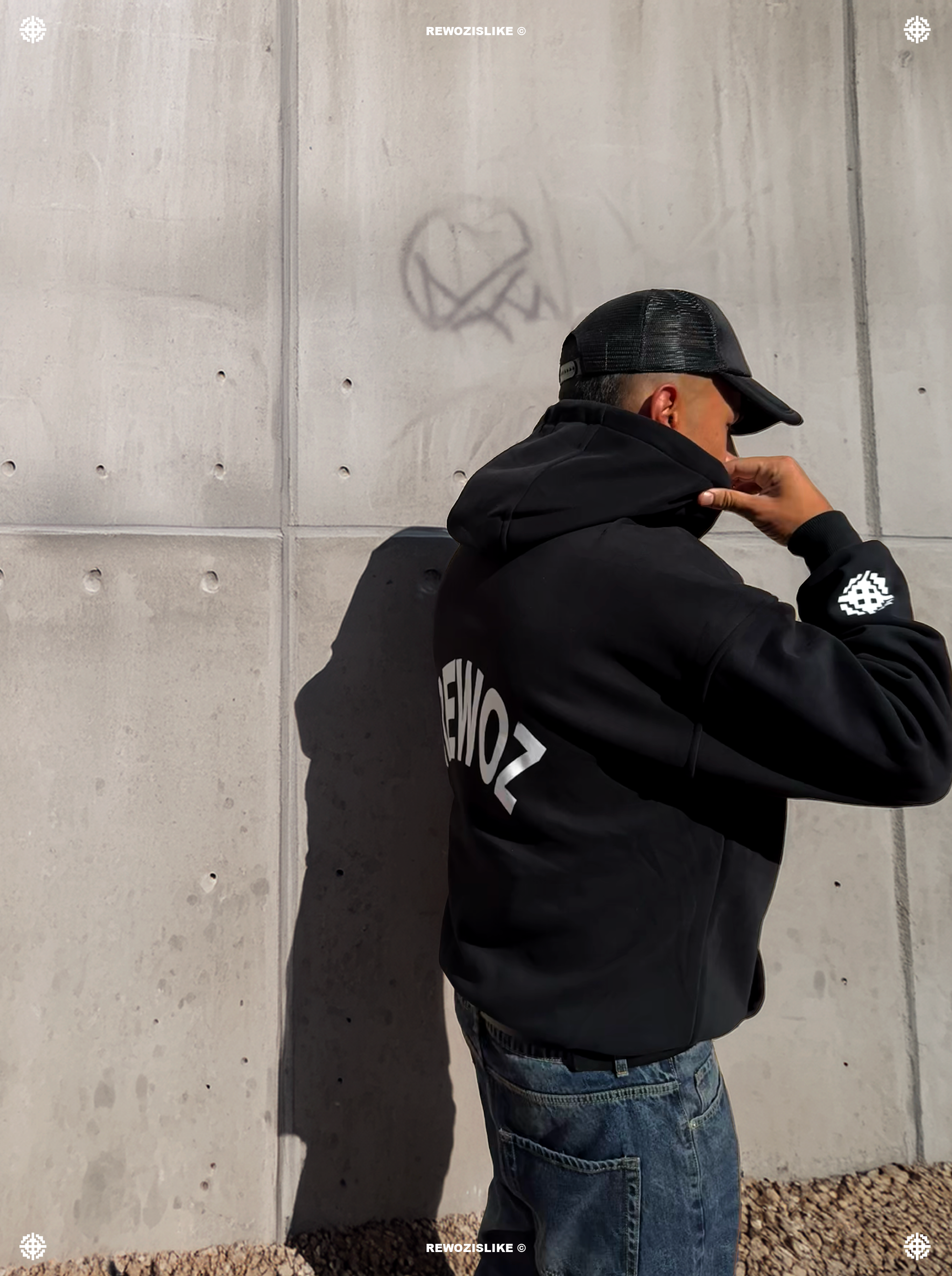 QUESTA FELPA CON IL CAPPUCCIO NERA IN 100% COTONE UNISCE COMFORT, QUALITÀ E STILE ESSENZIALE. IL DESIGN MINIMALISTA È ARRICCHITO DALLA STAMPA DEL LOGO REWOZISLIKE© ESEGUITA IN SERIGRAFIA POSIZIONATA IN MODO DISTINTIVO NEL DETTAGLIO SUL PETTO, SULLE MANICHE E GRANDE AD ARCO SULLA SCHIENA, CONFERENDO UN TOCCO ACCATTIVANTE E RICONOSCIBILE.